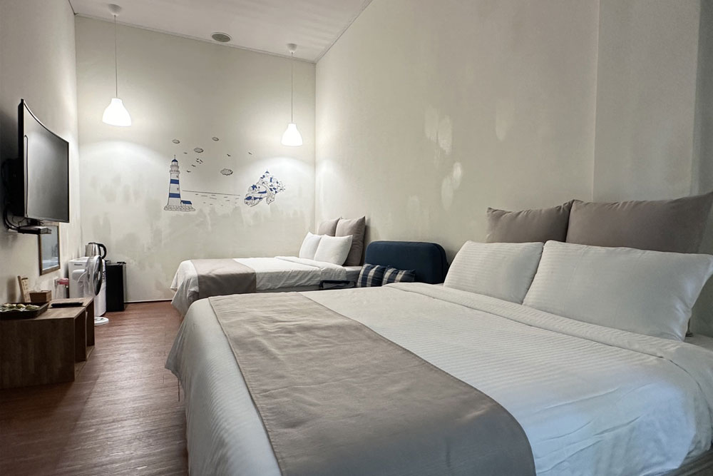 - 請依「訂房人數」入住,為確保住房品質,登美僅提供「超額人數1人」入住,並於訂房時選擇加床,無法入住當天增加人數,小孩(身高超過120公分)亦算人數。